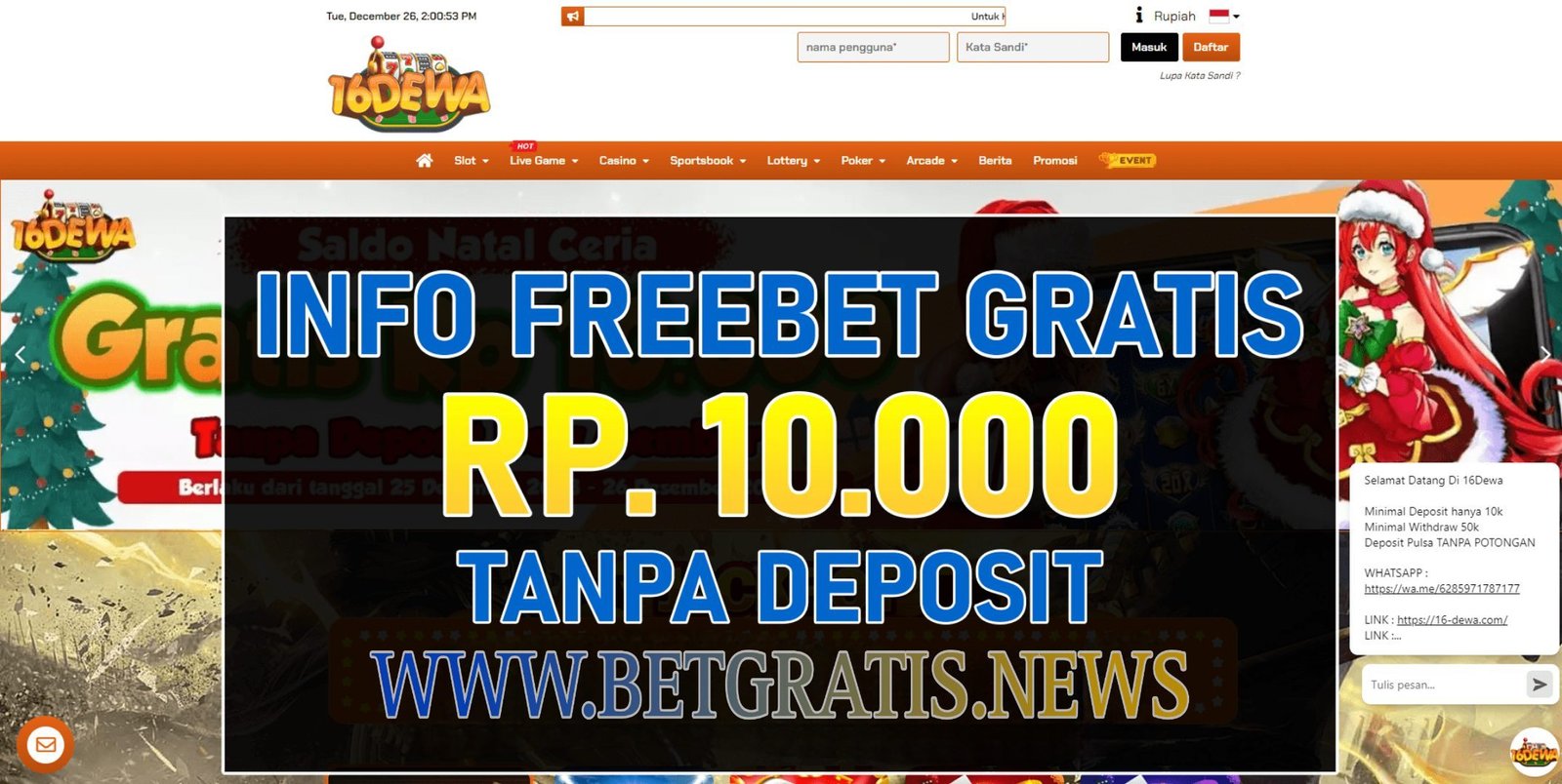 - Freebet Rp 10.000 Tanpa Deposit New Member