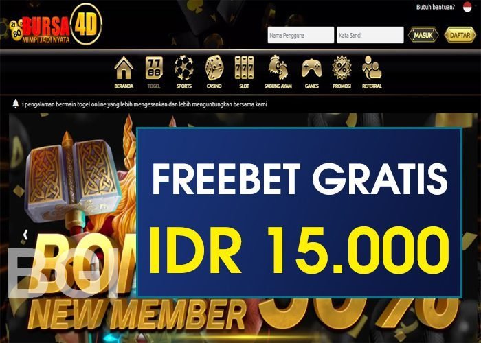 Dapatkan freebet Gratis sebesar Rp 15.000,- Tanpa deposit, Dari bursa4D Untuk kamu yang ingin mengikuti Promo FreeBet ini, biasakan untuk membaca syarat dan ketentuan yang telah diberikan di bawah ini sampai