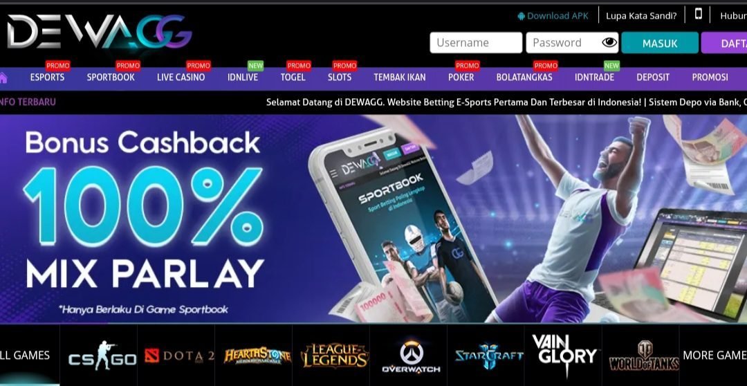 DewaGG hadir sebagai website yang menyediakan taruhan atau judi e-sport pertama dan terbesar di Indonesia. Game online seperti CS:GO, DOTA 2, HEARTSTONE, LOL, FIFA, MOBILE LEGEND dan masih banyak lagi game e-sport terbaik lainnya. Tidak hanya permainan e-sport, DewaGG juga menghadirkan permainan sportbook, slots, poker, idnlive number, bolatangkas, Togel, virtual sport yang tidak kalah seru