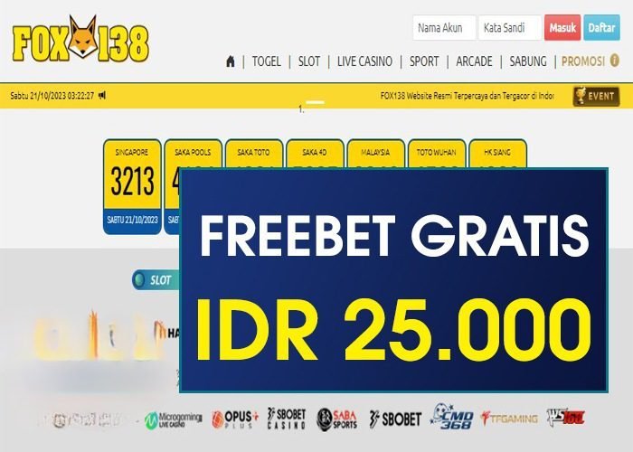 Dapatkan freebet Gratis sebesar Rp 25.000,- Tanpa deposit, Dari fox138 Untuk kamu yang ingin mengikuti Promo FreeBet ini, biasakan untuk membaca syarat dan ketentuan yang telah diberikan di bawah ini sampai