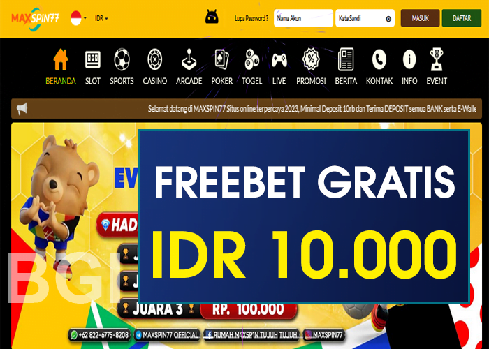 Dapatkan freebet Gratis sebesar Rp 10.000,- Tanpa deposit, Dari maxspin77 Untuk kamu yang ingin mengikuti Promo FreeBet ini, biasakan untuk membaca syarat dan ketentuan yang telah diberikan di bawah ini sampai selesai