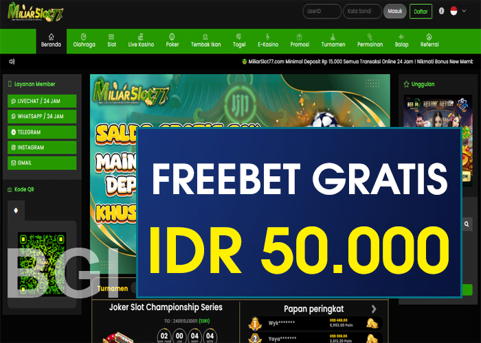 Dapatkan freebet Gratis sebesar Rp 50.000,- Tanpa deposit, Dari miliarslot77 Untuk kamu yang ingin mengikuti Promo FreeBet ini, biasakan untuk membaca syarat dan ketentuan yang telah diberikan di bawah ini sampa