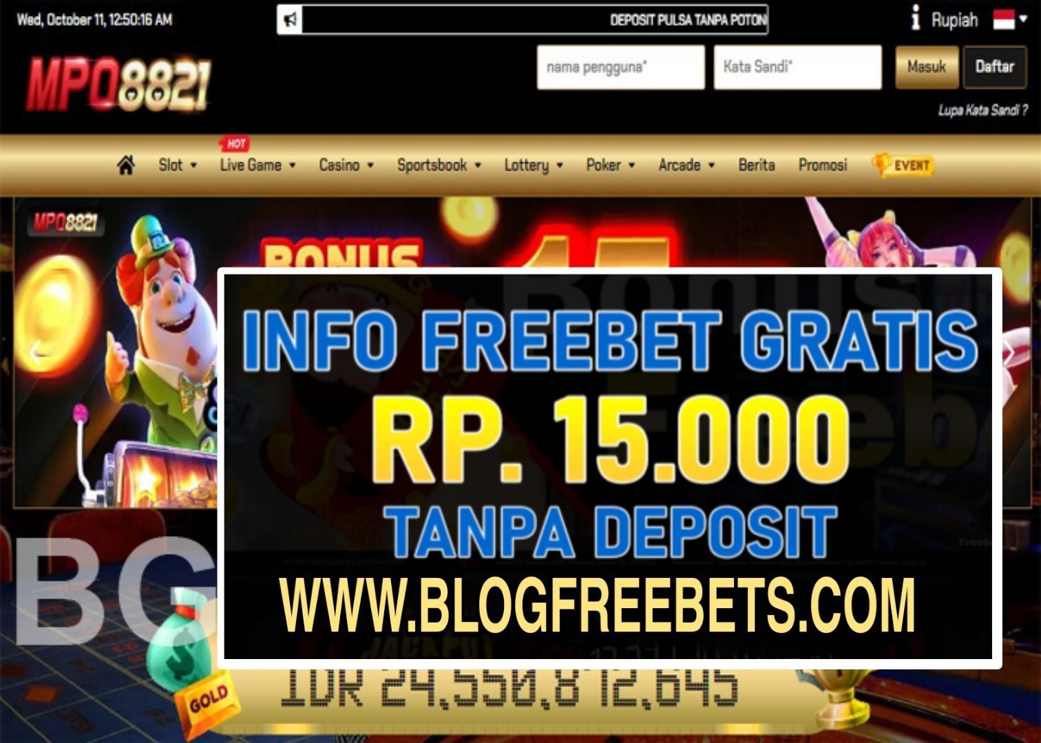 Dapatkan freebet Gratis sebesar Rp 15.000,- Tanpa deposit, Dari mpo8821 Untuk kamu yang ingin mengikuti Promo FreeBet ini, biasakan untuk membaca syarat dan ketentuan yang telah diberikan di bawah ini sampai