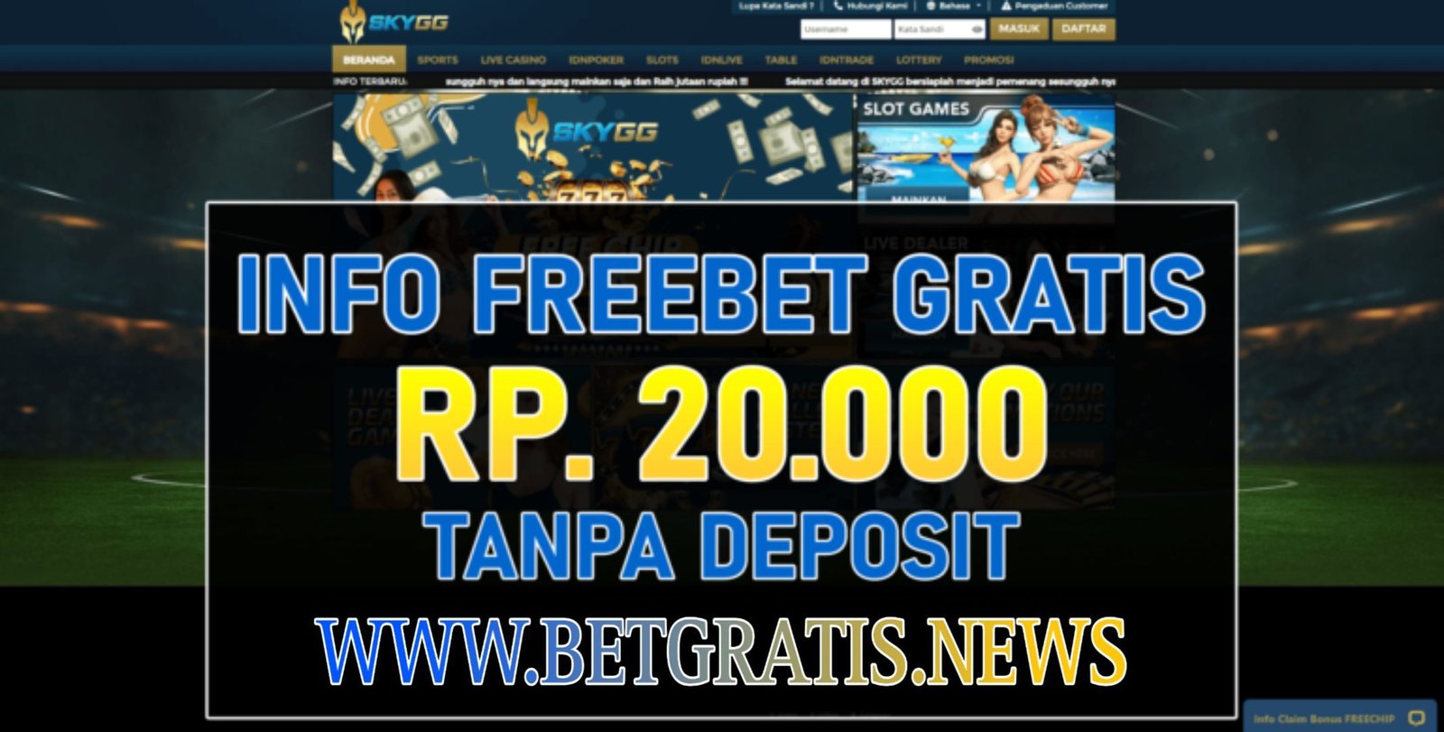 Dapatkan freebet Gratis sebesar Rp 10.000,- Tanpa deposit, Dari skyGG Untuk kamu yang ingin mengikuti Promo FreeBet ini, biasakan untuk membaca syarat dan ketentuan yang telah diberikan di bawah ini sampai