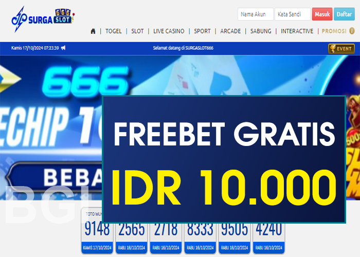 Dapatkan freebet Gratis sebesar Rp 10.000,- Tanpa deposit, Dari surgaslot666 Untuk kamu yang ingin mengikuti Promo FreeBet ini, biasakan untuk membaca syarat dan ketentuan yang telah diberikan di bawah ini sampai selesai